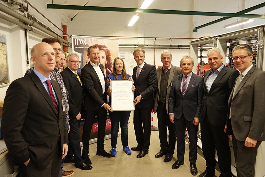 The 21-year-old is in the second year of her training as a prospective electronics technician for energy and building technology at Hepp-Schwamborn, and had convinced the trainers and employers so much that the Kreishandwerkschaft Mönchengladbach and the Chamber of Crafts in Dusseldorf had to name her as the first female trainee in industrial-technical training to receive the "apprentice of the month” award in the Chamber’s district. Chamber of Commerce President, Andreas Ehlert, and county craftsman, Frank Mund handed, handed over the award certificate, as well as an "Ice Watch", in recognition of her excellence, at the company headquarters in Rheydt.