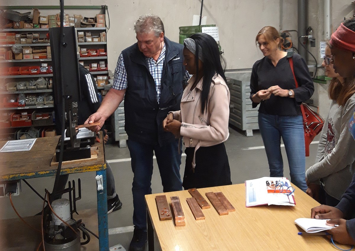 11 October 2018: After Mr. Schwamborn had informed about the field of activity of the Hepp-Schwamborn company and the various possibilities in the training occupation of electronics technician for energy and building technology in our company, the group of pupils visited our electrical workshop.