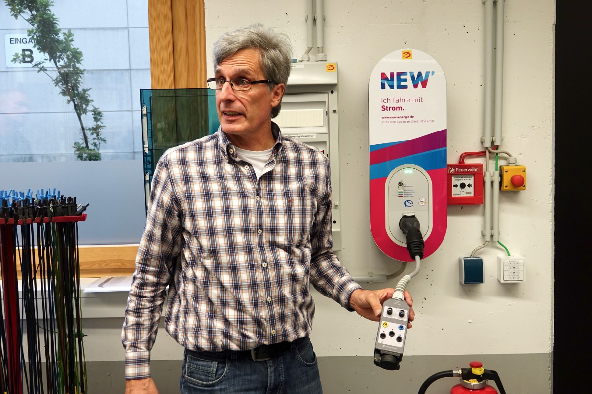 Speaker Hartmut Berns introduced the employees to the new knowledge in both a theoretical and a practical way, made possible by the specially equipped charging columns in the well-equipped training rooms.